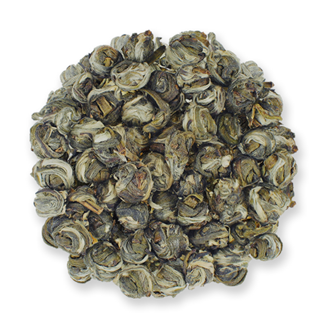Like a plant growing from a seed, Jasmine Pearls go through the "agony of the leaf" during brewing and unfurl in a similar manner. Fresh and sensual, Jasmine Pearls can be steeped up to 3 times. The rolled pearls are dried, then blended with unopened night-blooming jasmine flowers.