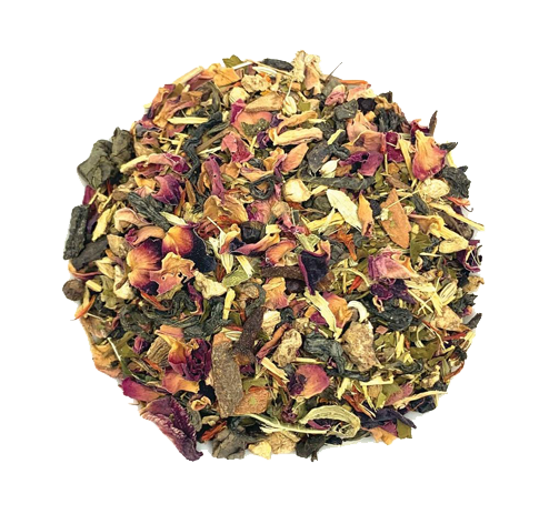 A fragrant herbal blend that combines the revered holy basil (tulsi) with the warming spice of ginger. Known for its numerous health benefits, this tea is often enjoyed for its immune-boosting properties and digestive support. The earthy, slightly peppery notes of tulsi paired with ginger’s warmth create a comforting, invigorating drink that’s perfect for relaxation and rejuvenation.